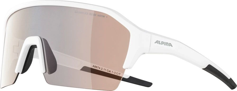 The ALPINA Ram Hr Q-Lite V has a frame open at the bottom and is equipped with a Varioflex lens. The self-tinting (photochromic) lens ensures that the trail is always easy to see, even in changing light conditions. In addition, Hicon technology significantly increases contrast, makes colors appear richer and provides sharper vision. This allows the eyes to stay focused longer, making them less stressed and more efficient at crucial moments. via cold-formable nose pads, the Alpina RAM can be optimally adapted to any nose. Together with the rubberized temples, this ensures a comfortable and secure fit of the sports glasses.