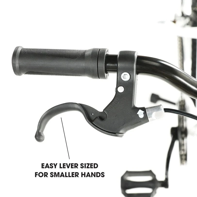 A sturdy lifetime warranty frame, single-speed, 20″ white bike that’s simple to ride. Designed for 6 to 8 year old children, it can be ridden around town as well as on trails.