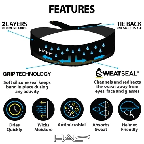 The Halo II Headband is Halo Headband’s best-selling headband. Featuring a classic elastic pullover design, the Halo II will fit any head comfortably to redirect sweat and moisture from your eyes and face. Featuring their patented SweatBlock Technology and Dryline® Fabric, these athletic sweatbands will keep up with your high performance training. The Halo II’s are great sweatbands for running, cycling, or virtually any other activity that will work up a sweat. They fit comfortably under helmets and are great headbands for men or women.
